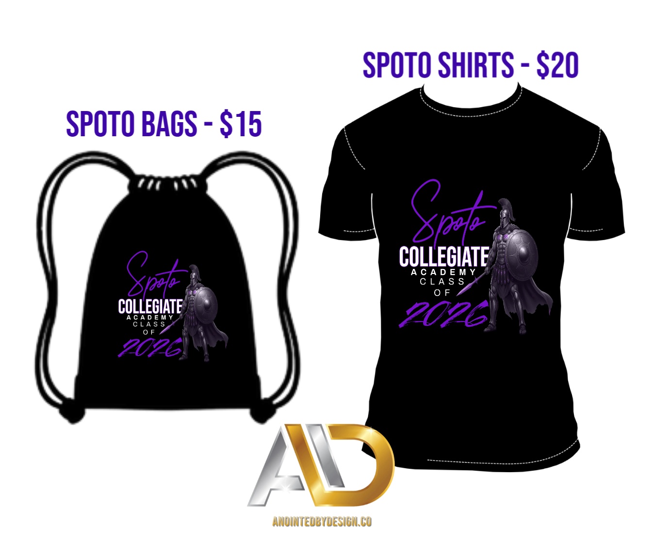 Celebrate your senior year in style with this bold, custom-designed tee featuring the iconic Spoto warrior graphic and vibrant class lettering. Available in sizes XS–4XL, with larger sizes upon request. Perfect for school events, photos, or everyday pride—wear your legacy loud!